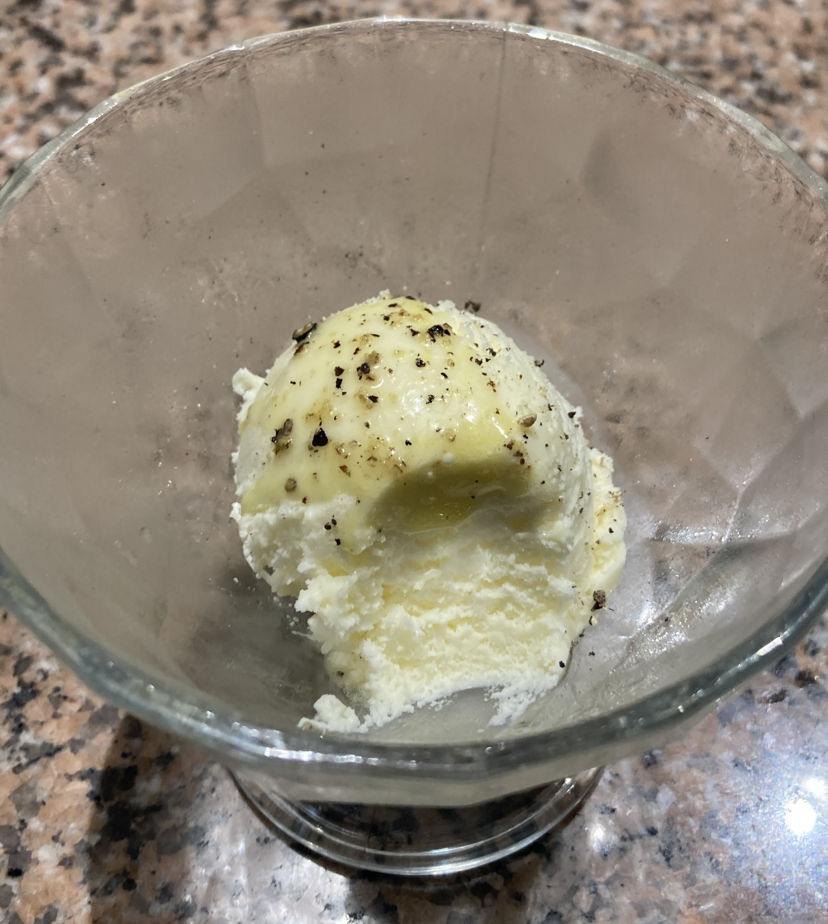 디저트로 나온 바닐라 아이스크림🍨 +뭔 오일.